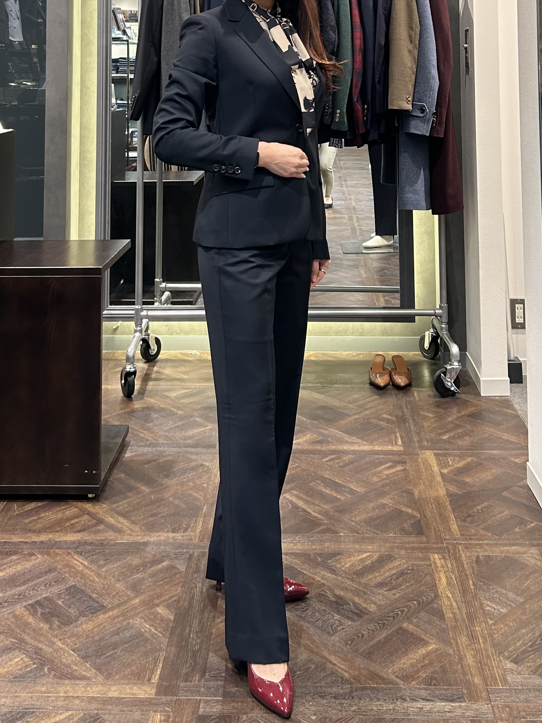 しっかり丈長めのフレアパンツが、一緒にオーダーいただきました赤いパンプスといいバランスです(*^^*)