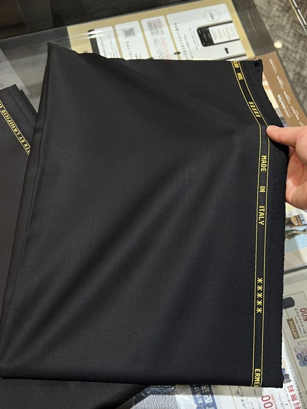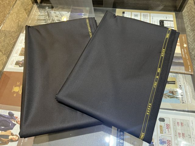 ビジネスシーンの生地は、黒の中にも艶感があらような生地を使用します。
