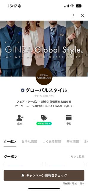 下記URLからLINEの友達追加していただくと最新のフェア情報やお得なクーポンの発行