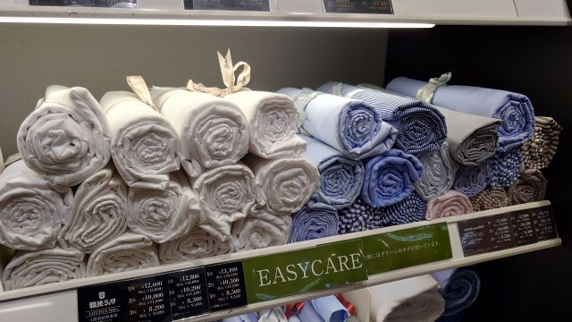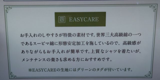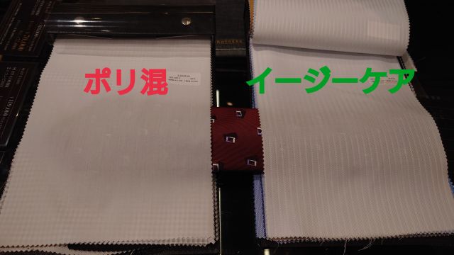 実際に来店の際触っていただくとわかりやすいのですがポリエステル混合のものよりもコットン100%の方がより柔らかくしなやかな生地です