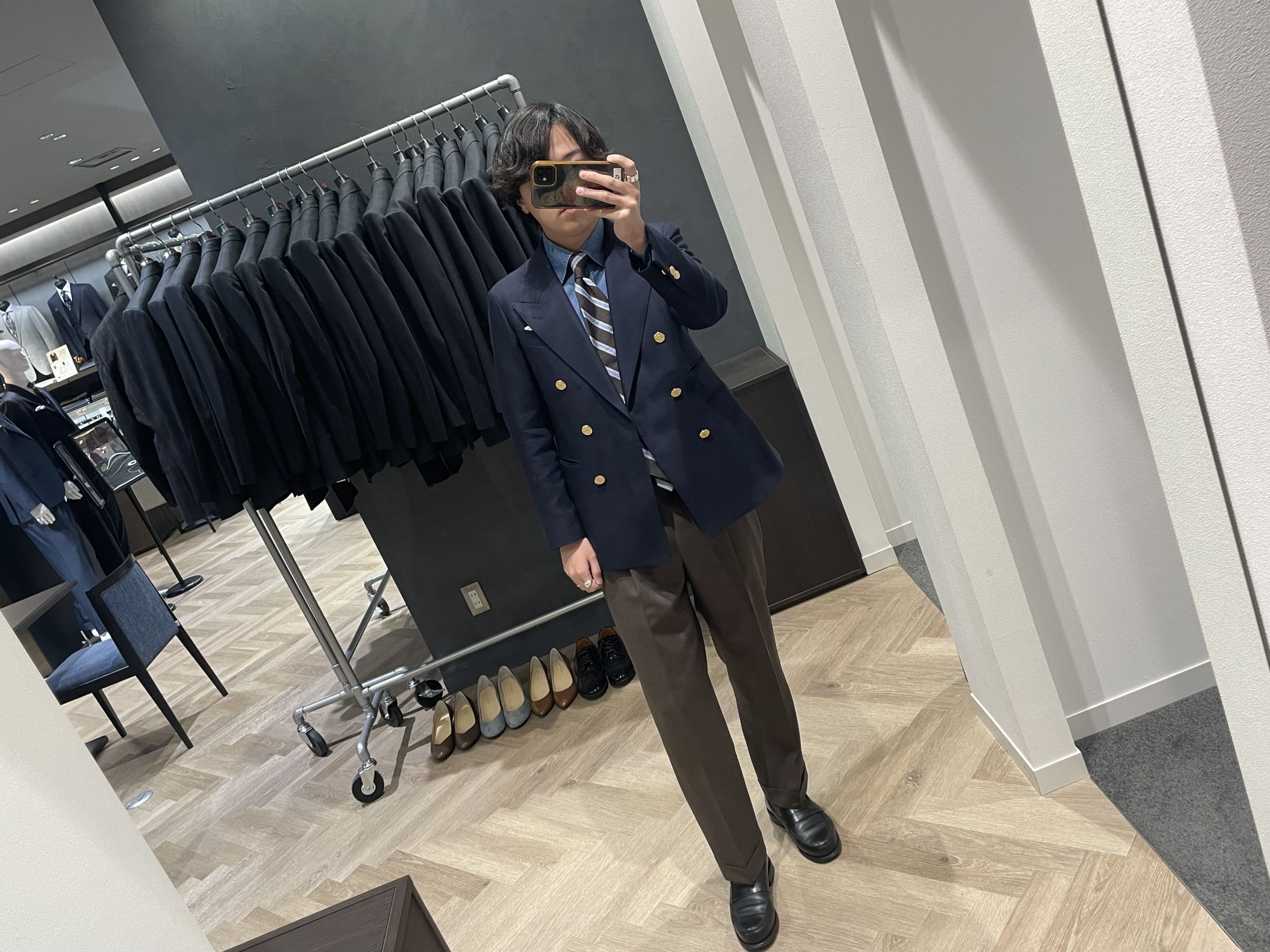 紺ブレの定番と言えばグレーのスラックスかと思いますが