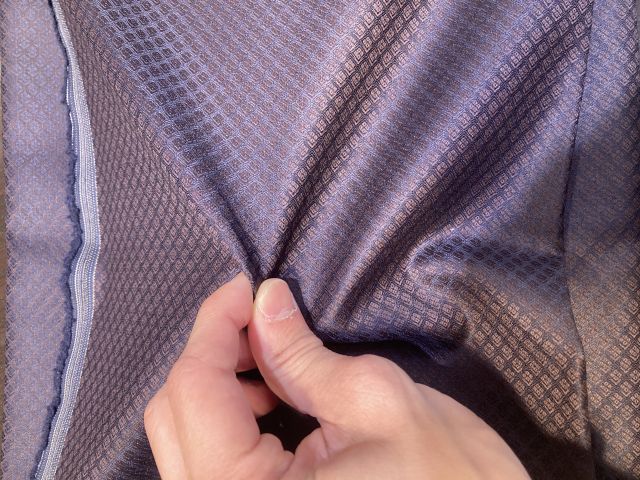 実物の色味はもう少し赤紫がはっきりしてくる生地になります