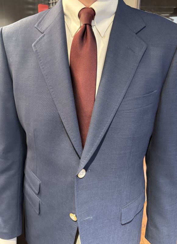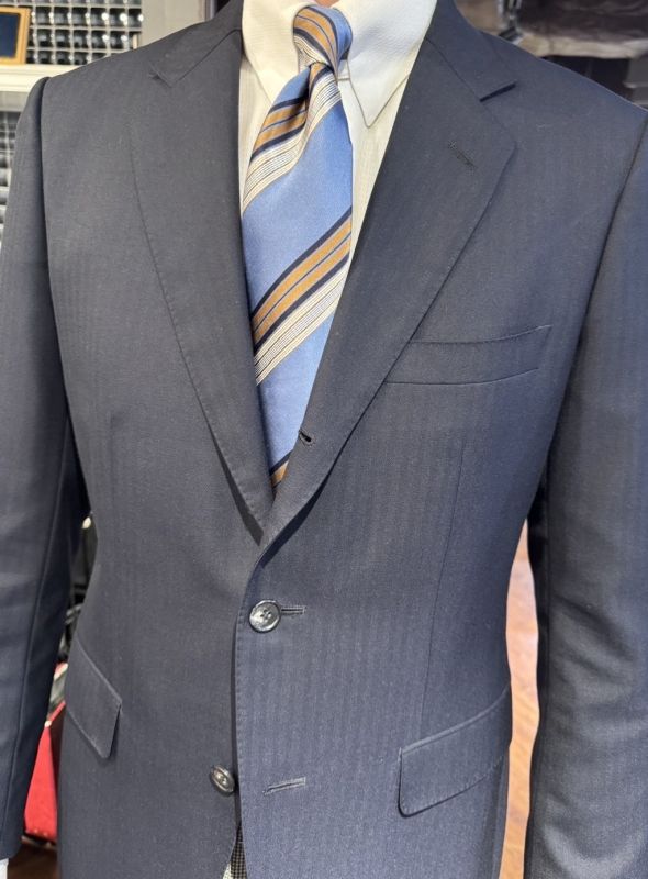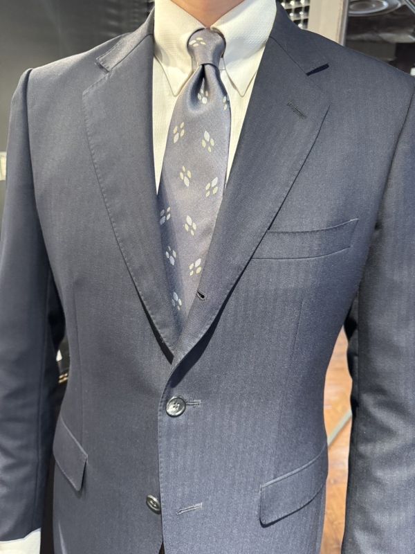 オーダースーツをさらに引き立てるために欠かせないのがネクタイの選び方。 今回から、定番カラーである「ネイビー」「グレー」「ブラウン」のスーツに合わせた、 おすすめのネクタイをご紹介します。 初回はネイビースーツに合わせるネクタイについて紹介です 色味のバランスを意識することで、ワンランク上の装いが完成します。 1. ネイビースーツに合うネクタイ ネイビースーツはビジネスでもフォーマルでも万能に使える定番カラーです。 **・おすすめネクタイカラー** - **ボルドー/ワインレッド**:落ち着いた印象と大人の色気を演出。- **シルバー/グレー系**:洗練された知的な印象に。