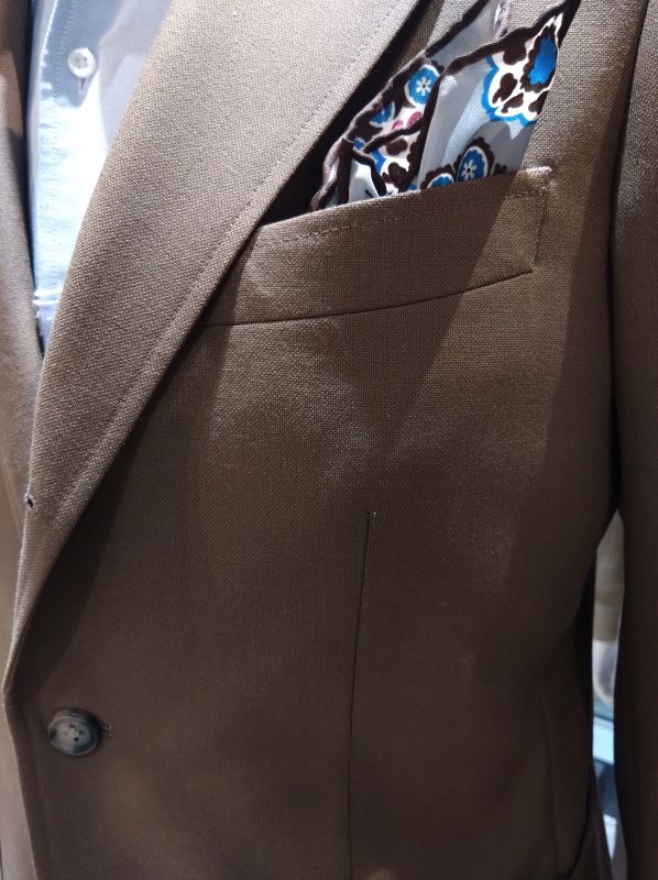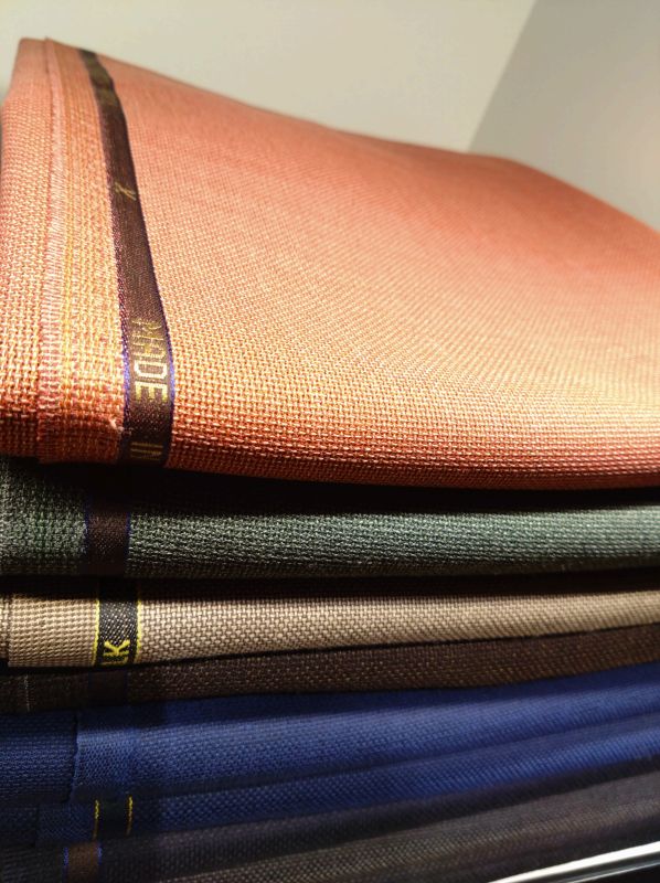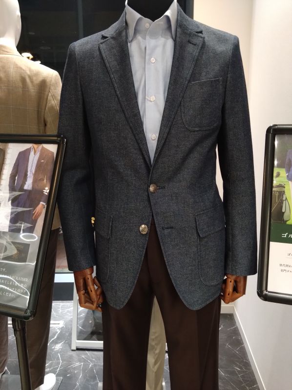 スーツ生地のようなツルっと光沢感のある生地ではなくホップサックや目の粗い生地がオススメです。