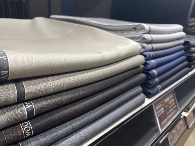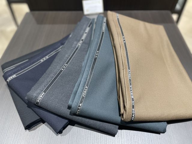 特徴としてはウール、カシミア、シルク、リネンといった幅広い種類の生地から膨大なコレクションになります!!