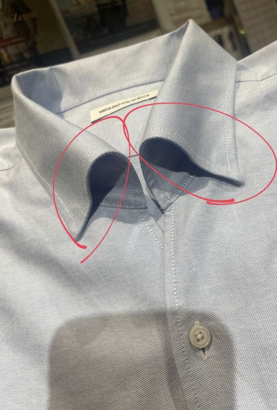 柔らかいことでノーネクタイで来た際に襟のロール(写真の赤丸、羽襟のタテの箇所)が