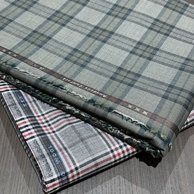 ちなみに、グレイチェックのこのスーツはストレッチ生地になります。