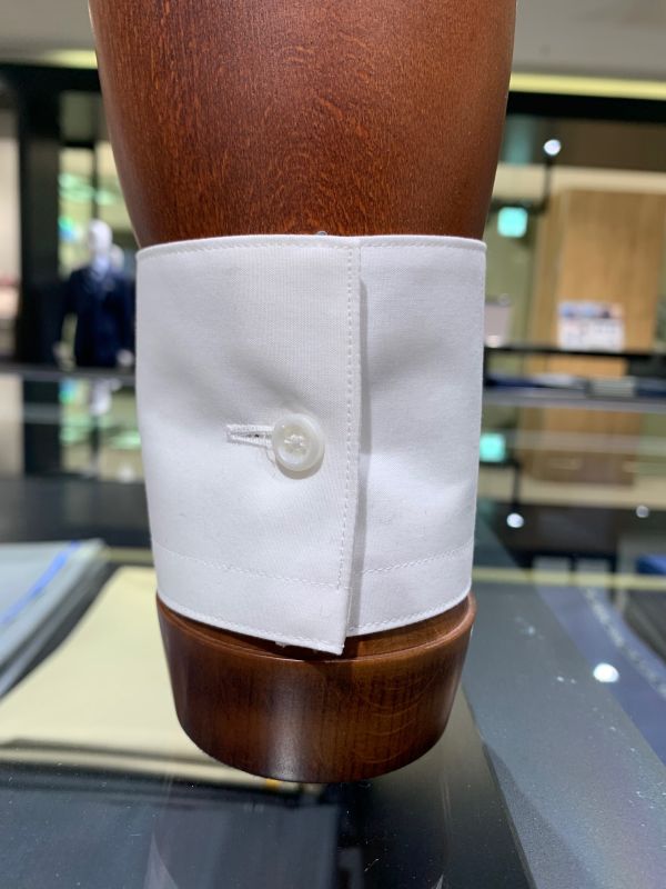 折り返しのないカフスでボタンで留める最もベーシックなデザインです。