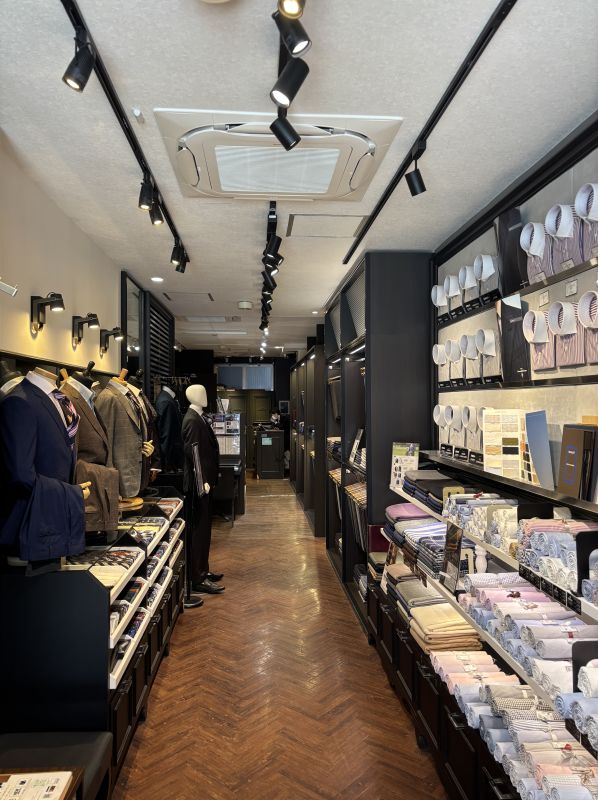 生地やスーツに囲まれていて瞬時にたくさんの生地を物色できます