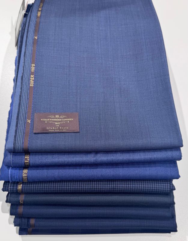 特にネイビーカラーが人気だそうで、当店でもたくさんの生地をご用意しております。