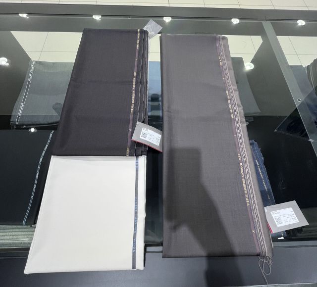 このスーツを薄いベージュのリネンシャツと合わせたら