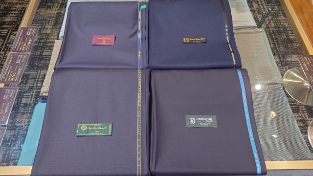 右上はポリエステル混合生地 右下ドーメル15POINT7 左上ゼニアトロフェオ 左下ロロピアーナオーストラリス