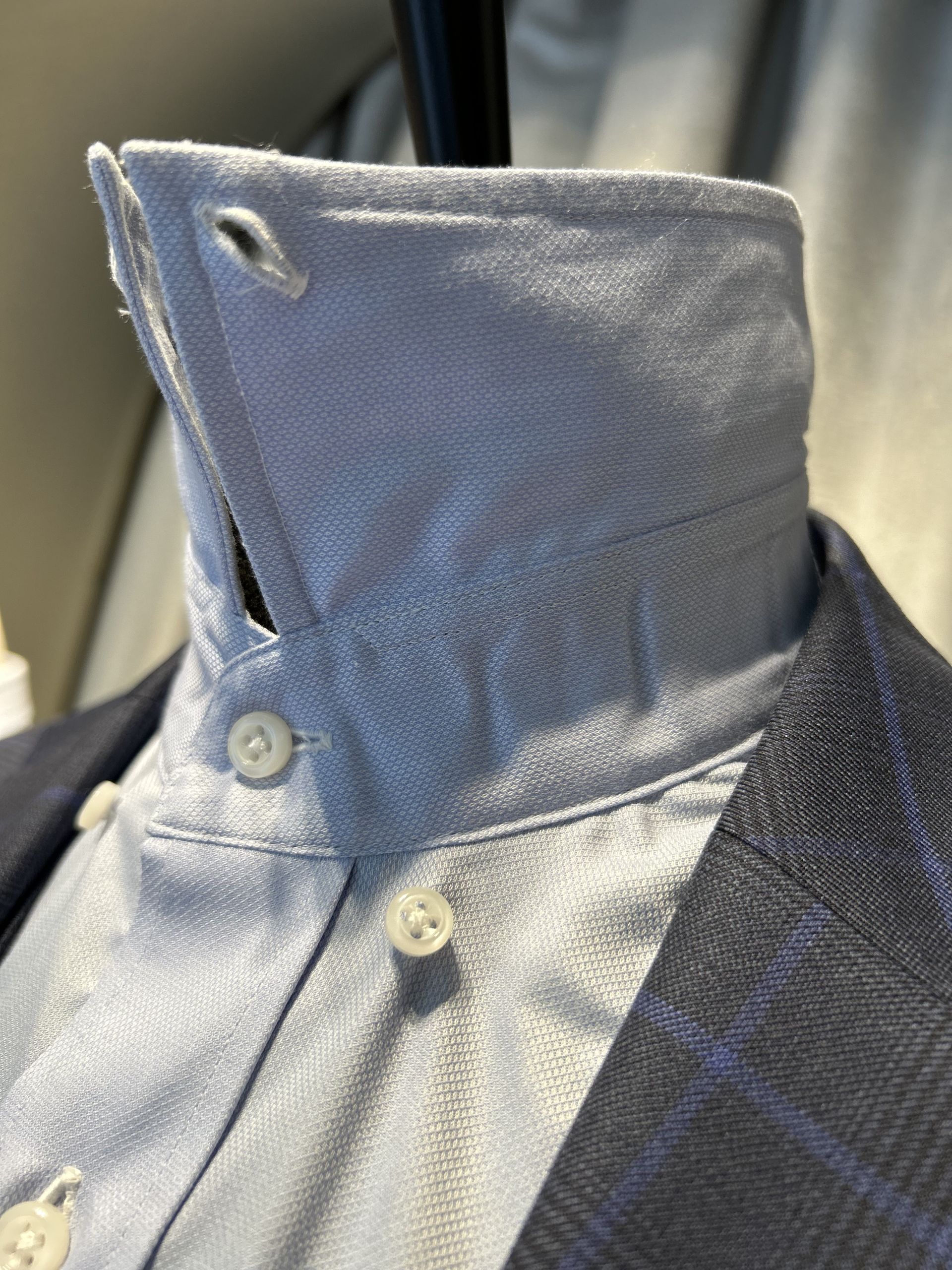 既存のシャツは「羽根襟」(上部)と「台襟」(下部)というパーツが縫い合わせられています。
