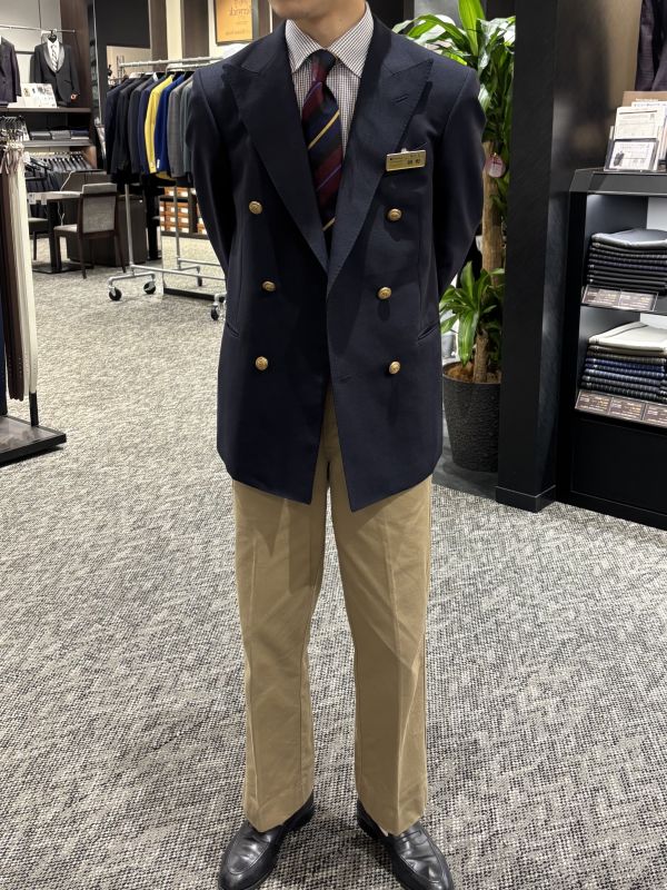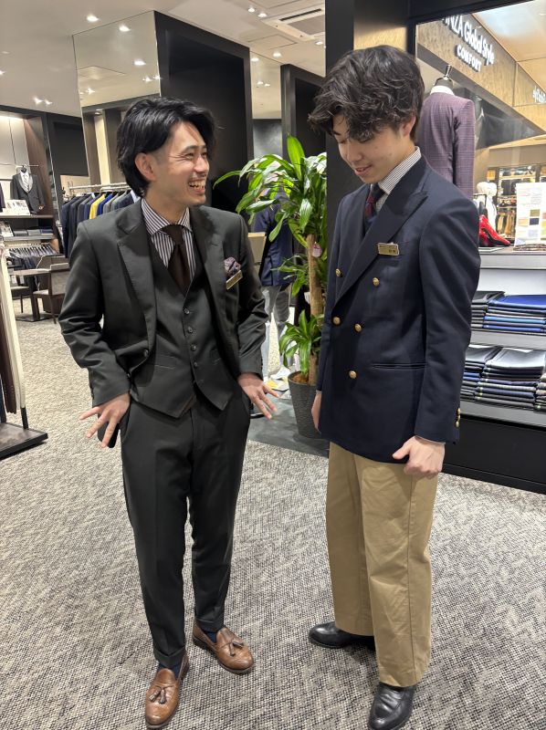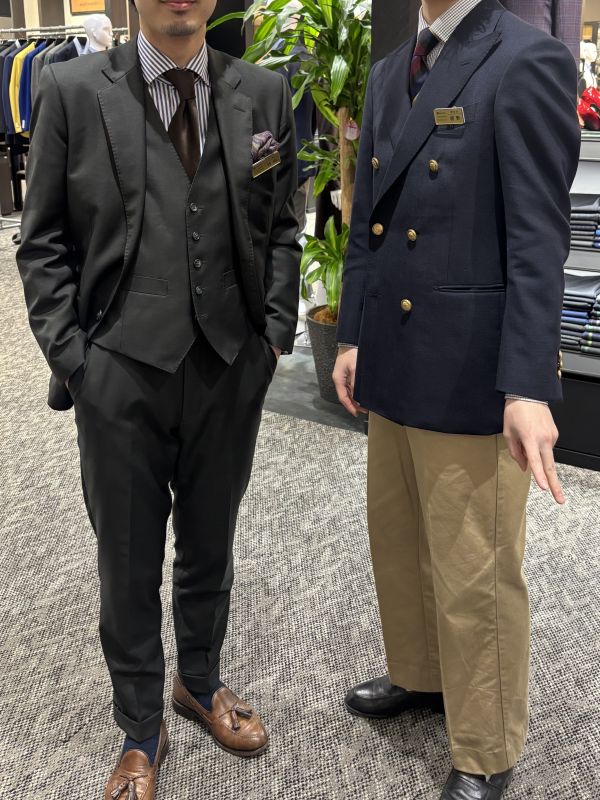 こちらは、このジャケパンスタイルは釦を留めないのがこだわりの朝野副店長です^^(笑)