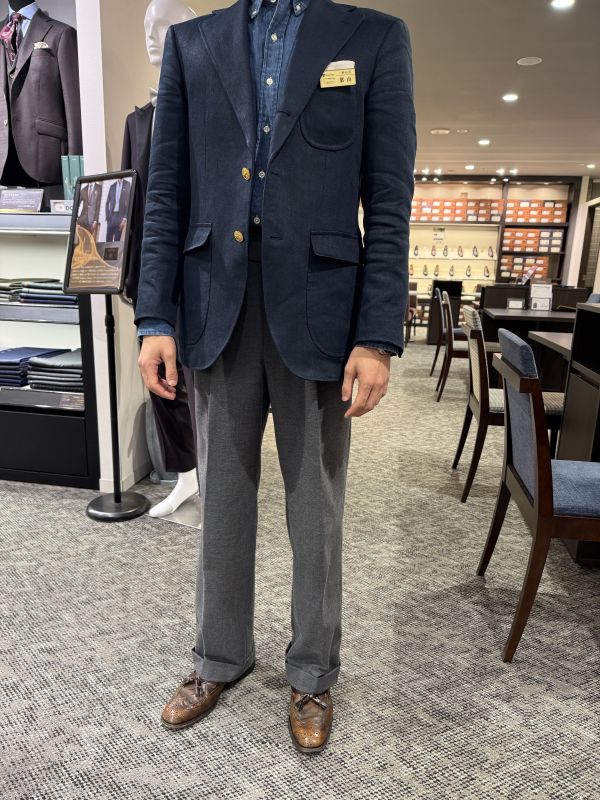 (今回着ていたのは、森田店長のおさがりのリネンブレザーでした。ちなみにスラックスもおそろいの生地)