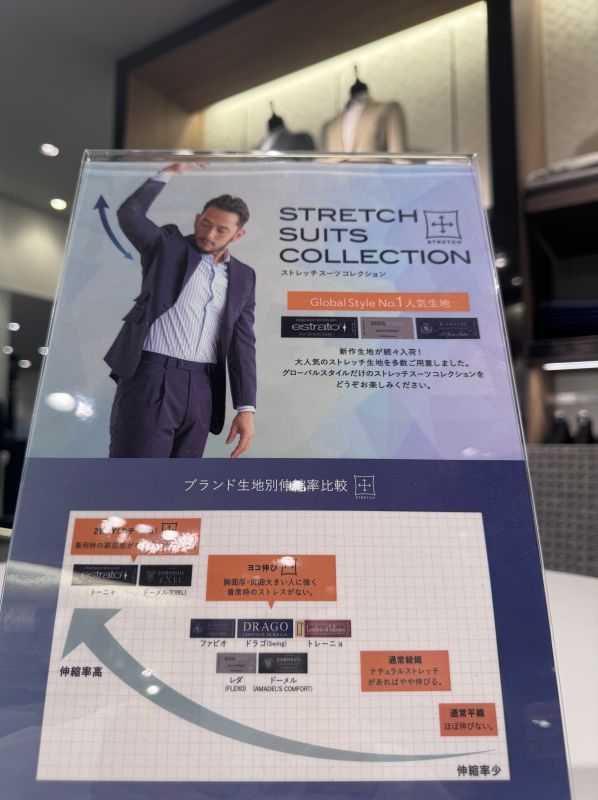 トーニャはイタリアの生地で、ストレッチ性がありシワになりにくいのが一番の特徴です。