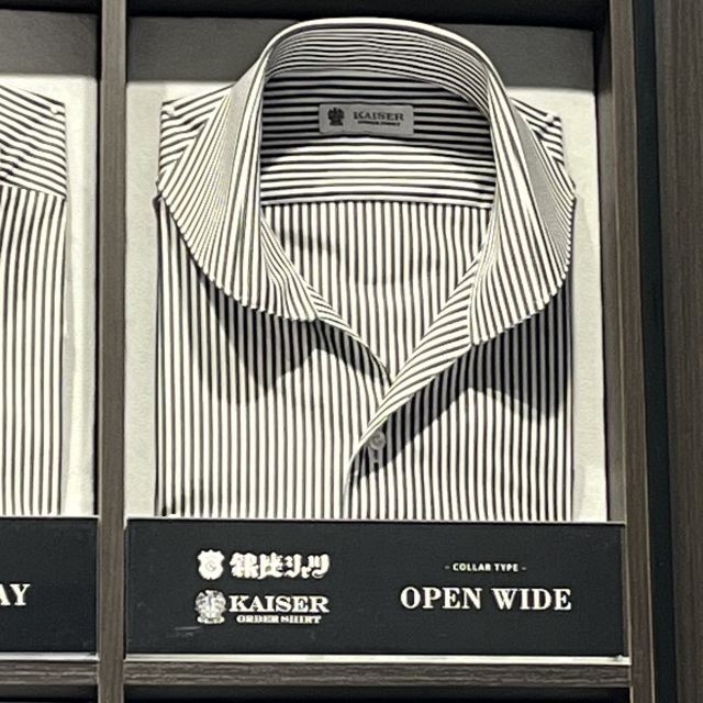 オープンワイドは第一ボタンがなく、襟が開いている襟型でスタイリストにも人気の襟型です♪