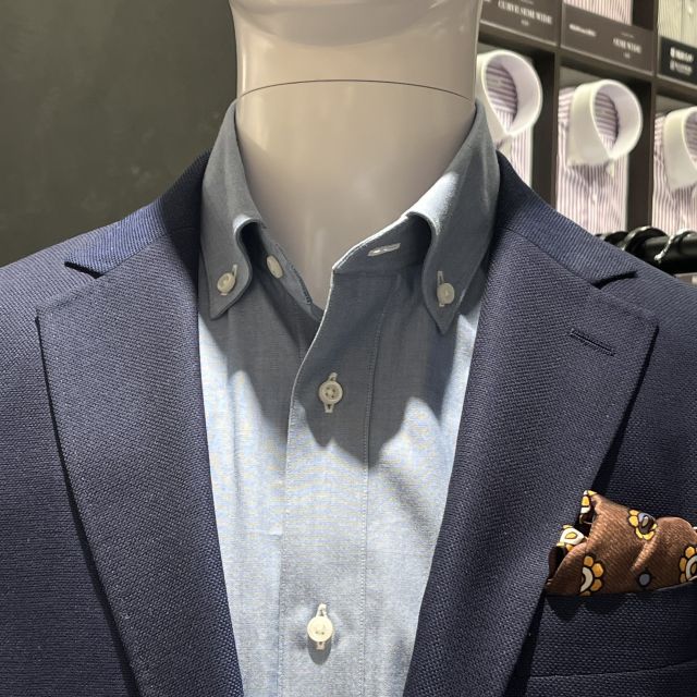 そんな時にも着こなしていただける襟型はオープンワイド、ボタンダウンです。