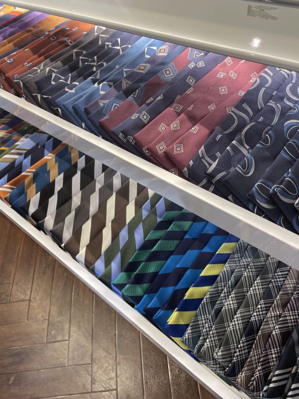 小紋柄やレジメンタルなどアクセントとなる柄を