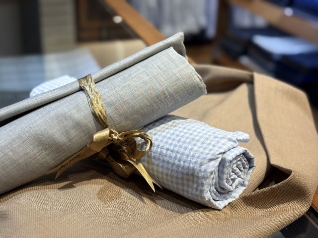 次にグレーのコットンリネンとシアサッカーのチェックをご紹介します。