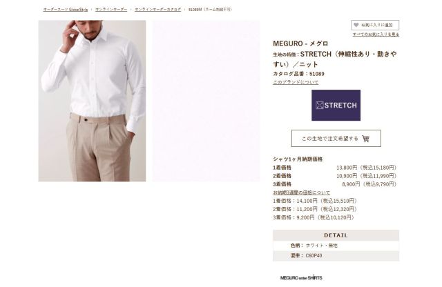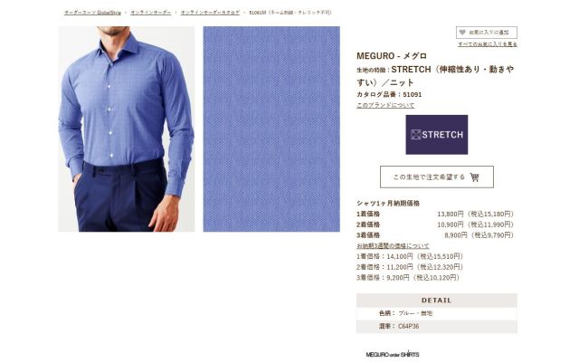 半袖シャツのお作りに対応しているブランドは「メグロ」のみですので、