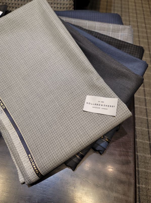 ホーランド&シェリーの「クリスペア」はウェイトが280~310gms、100%ウーステッドのオールシーズン対応スーツ地になります。