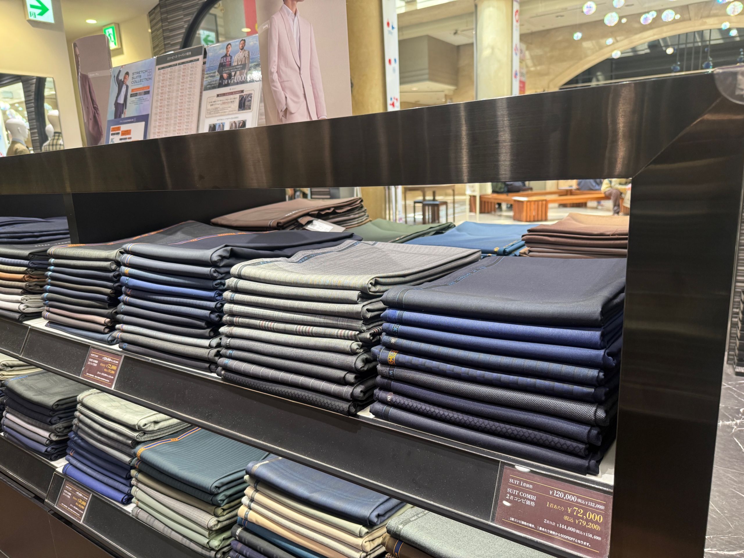 2着で48000円(税抜)の生地も沢山取り揃えております!