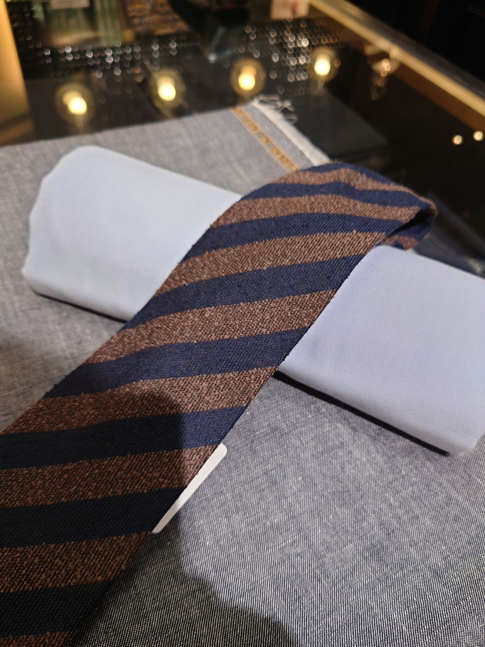 スーツらしく合わせるなら、王道のサックスのオックスフォード生地にカジュアルな生地感のタイと合わせてみても良さそうです。