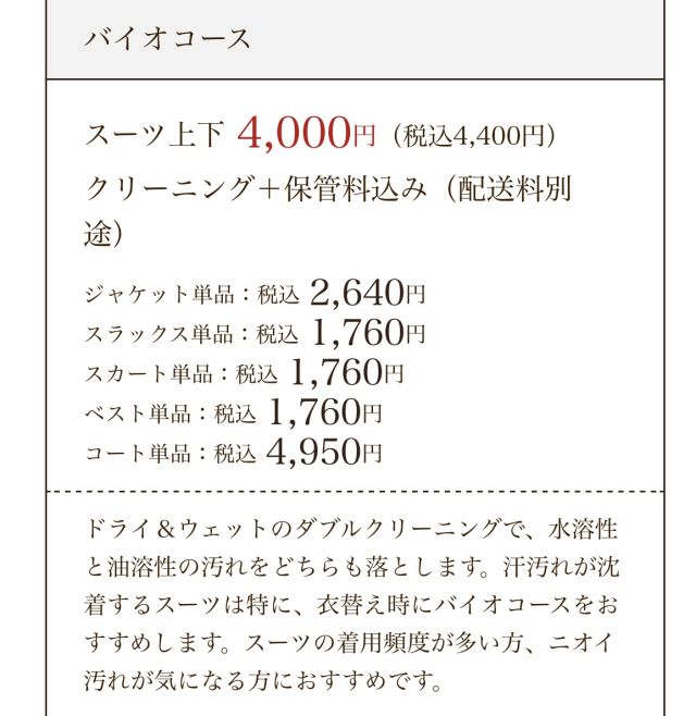 簡潔に言ってしまうとスーツ、コートのクリーニング&保管をしてくれるサービスです。