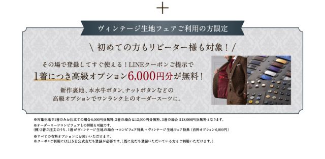 何といっても1着につき6000円分のオプションが付けられる特典が熱い!!