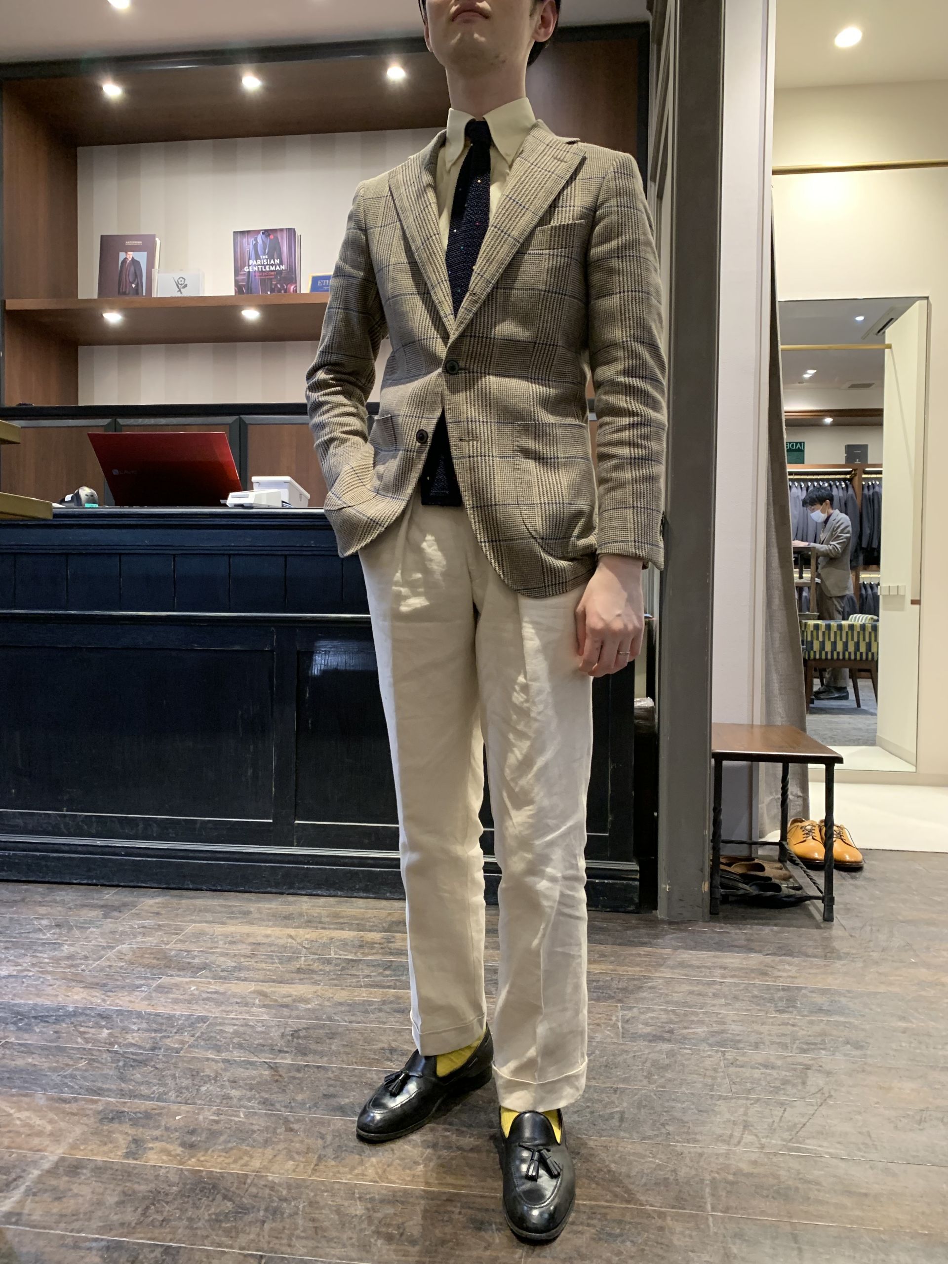 今年1月から在籍してるスーパールーキーの坂井さんは学生時代からオーダーを嗜む生粋のスーツ好き。