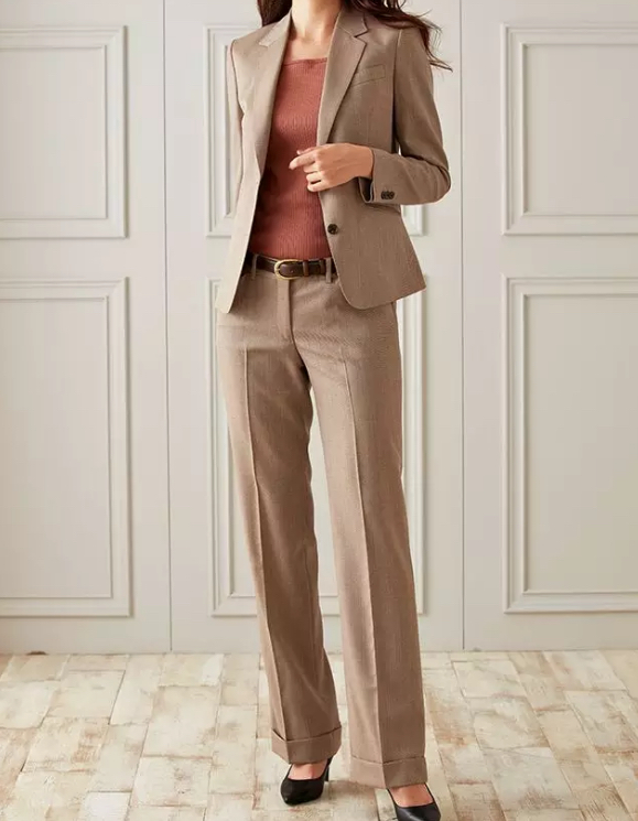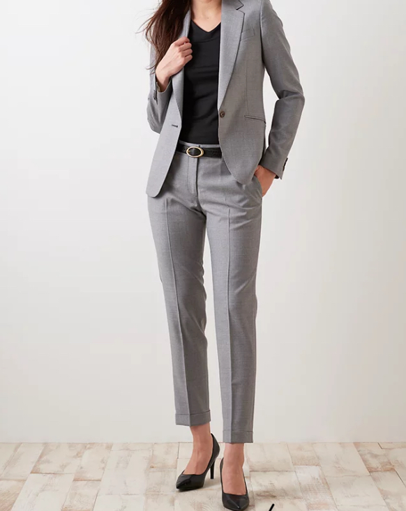 オフィスだけでなく、休日のオフコーデでも着回ししやすい万能カラーです。