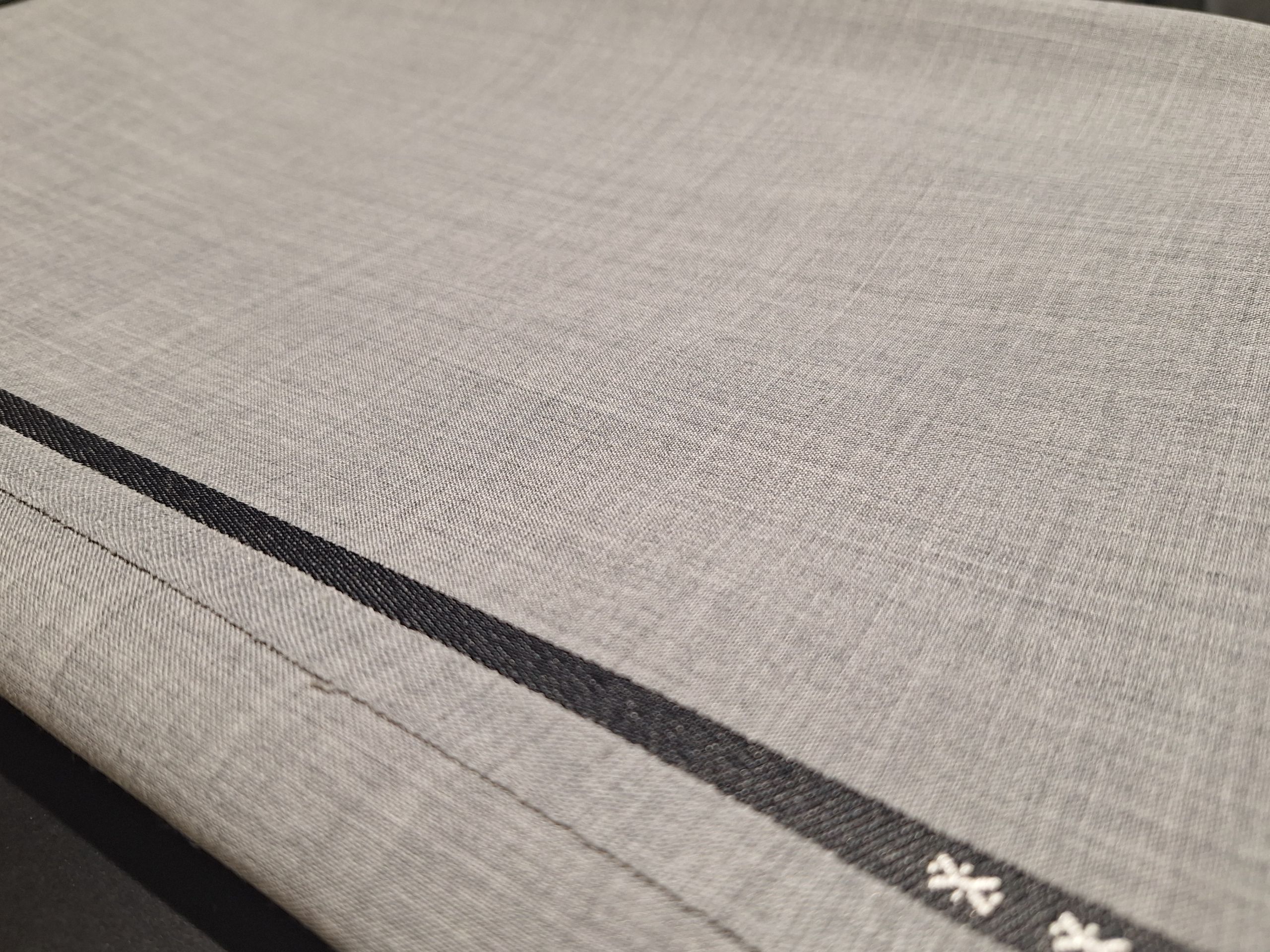 シャドーストライプとは、光の当たり方や見る角度によってストライプの柄が浮き出て見える柄のことです。
