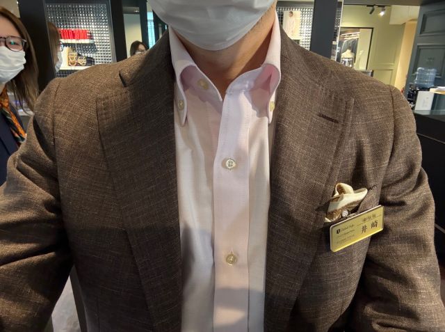 ボタンダウンにすることによって襟もしっかり立ってくれます。