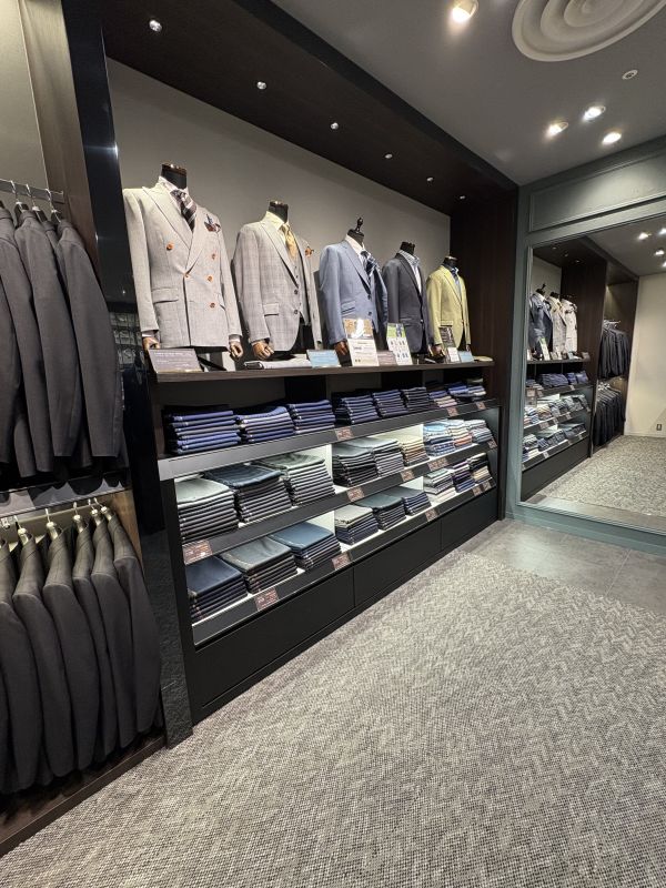 見本のゲージも多いのでオーダースーツの想像がつきやすい店舗です!