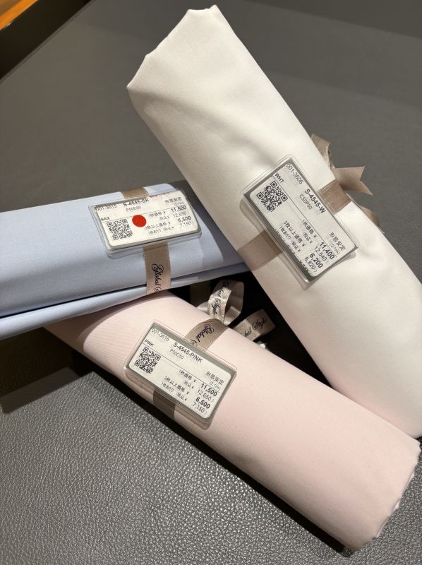同じS-4545品番の色違いで白と水色とピンクです。綿ポリ50%ずつの生地で、形態安定加工も施されています。価格もとってもリーズナブルで、無地なのでスーツに合わせやすいです。