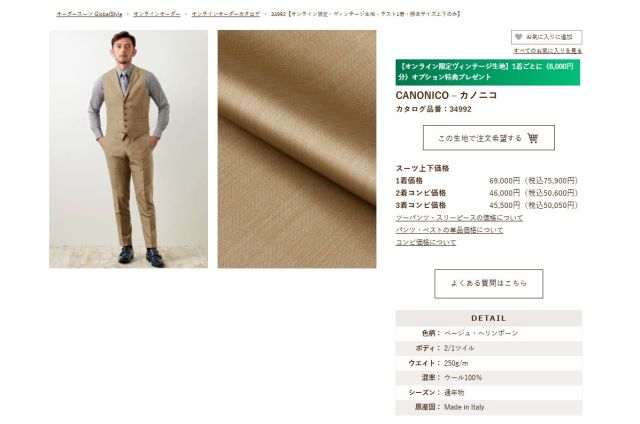 ・1着ご注文につき、有料オプションが¥6,000サービス