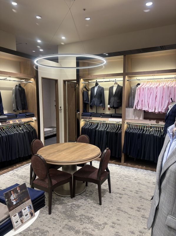 こちらに置いてある生地でも勿論お作りは可能ですが、メンズスーツの売り場に置いてある生地でもお作りは可能ですのでスタッフの方までお聞き頂ければなと思います!