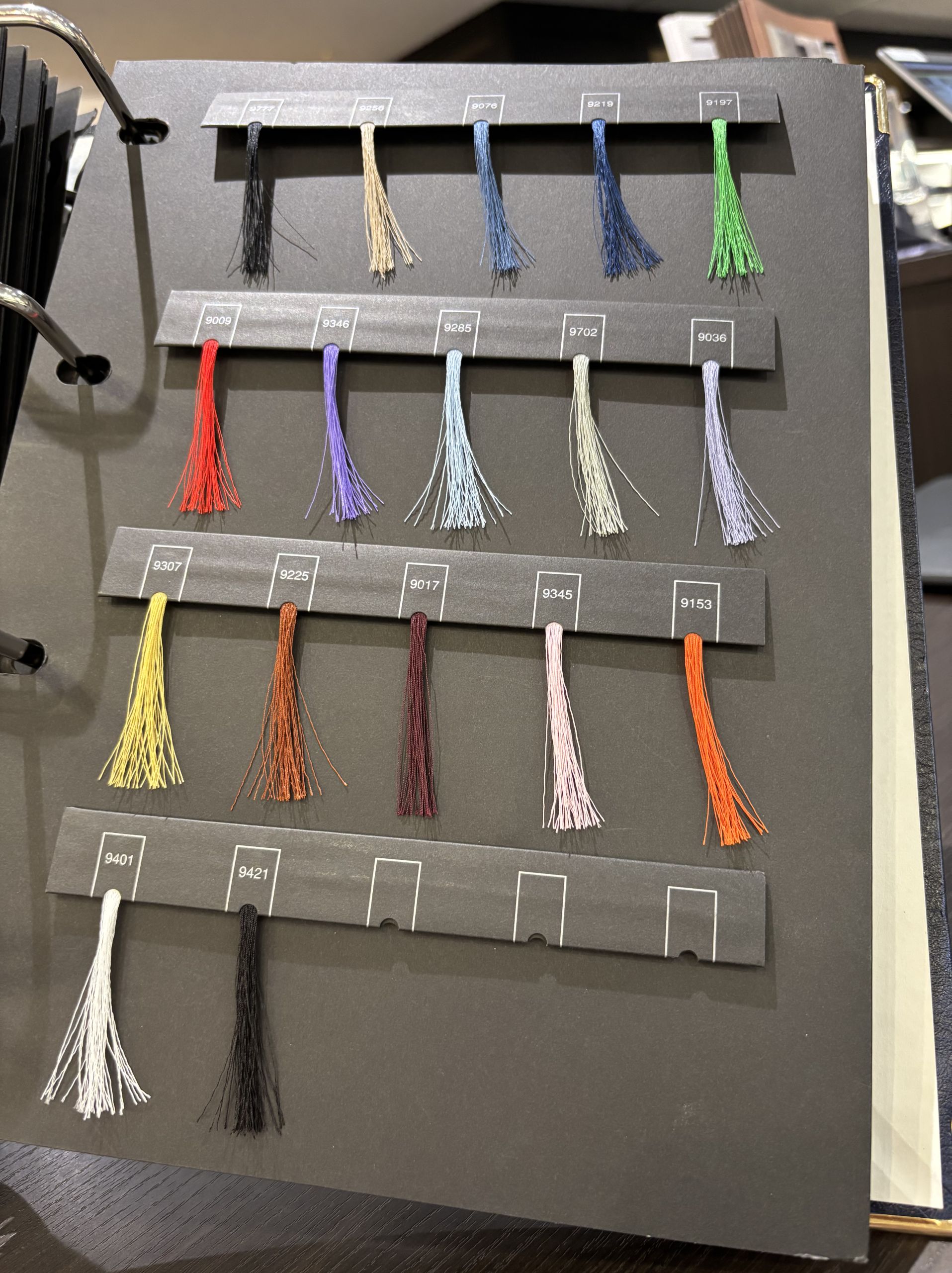 オーダーの場合は、穴かがりの糸の色を指定することも出来ますよ。