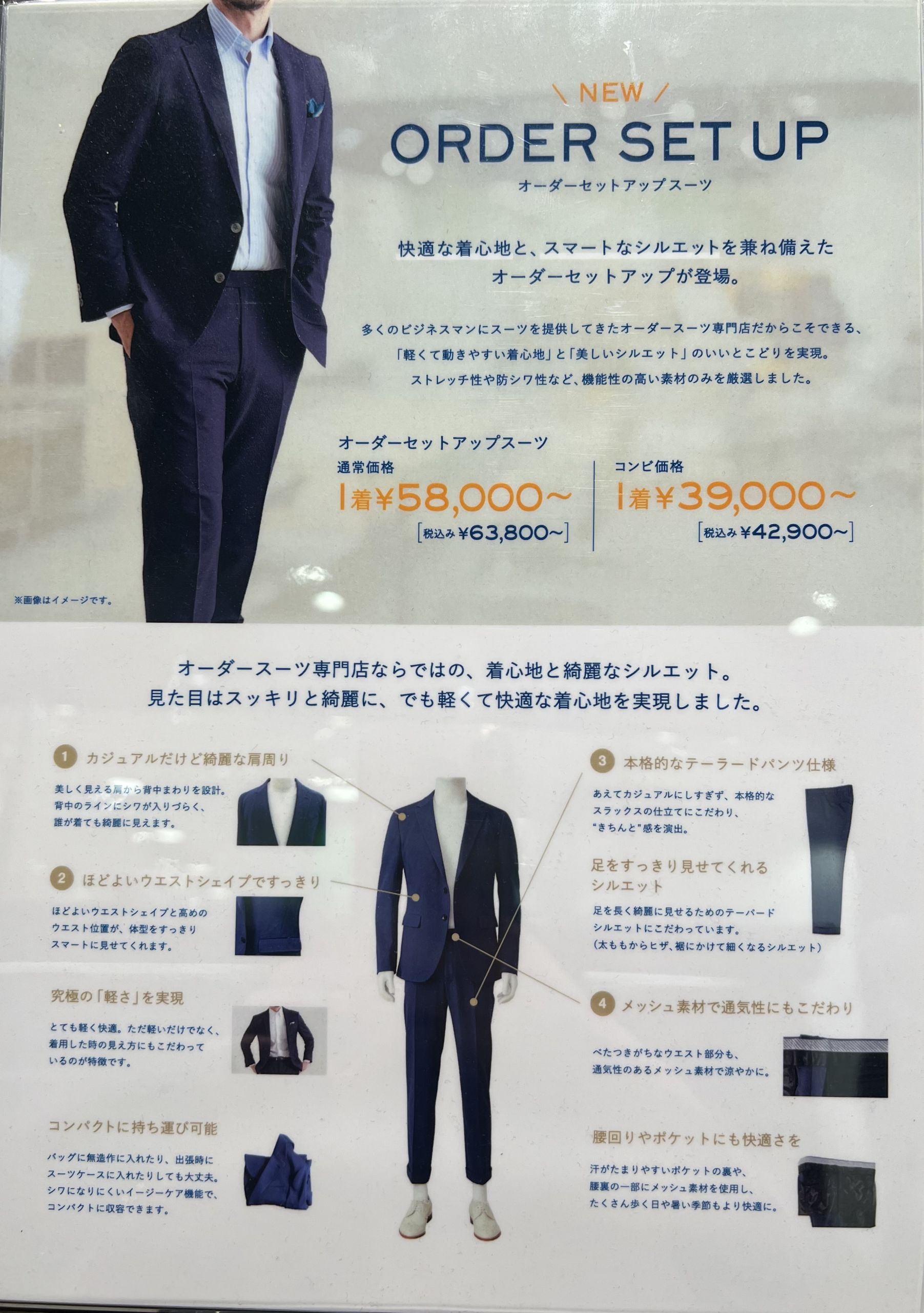 グローバルスタイルでは、オーダーのためスーツ、セットアップ