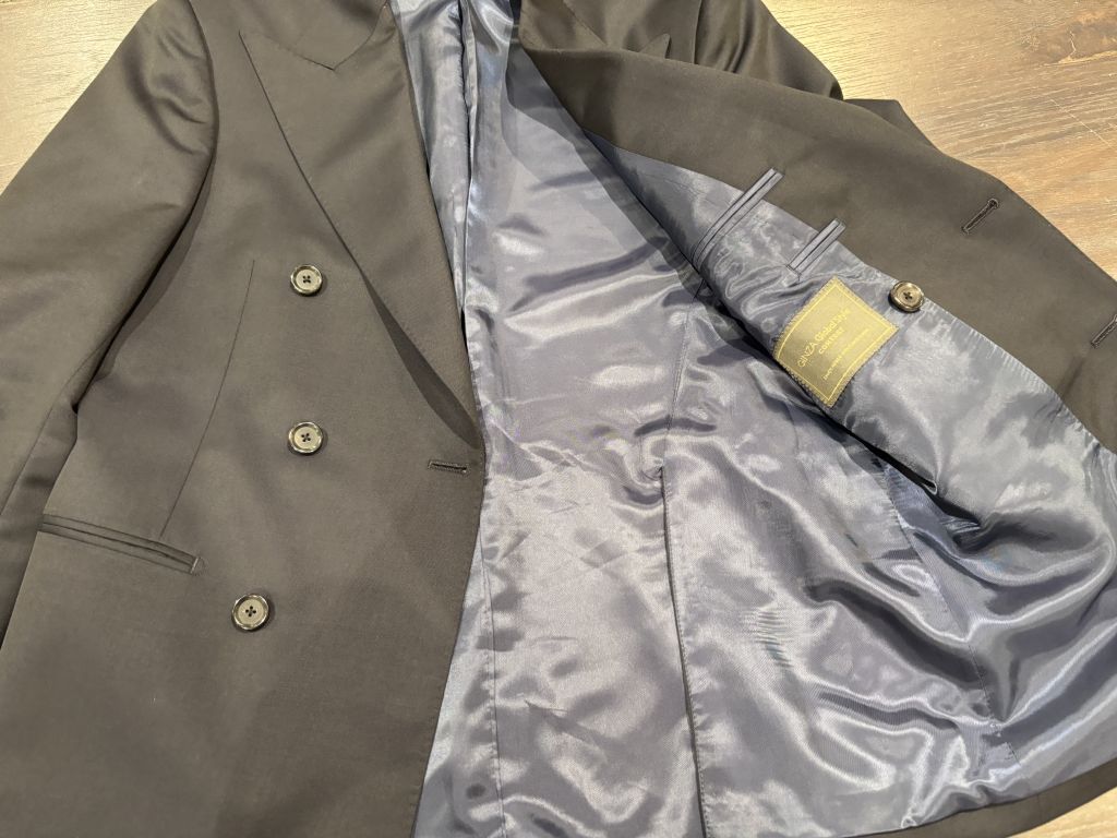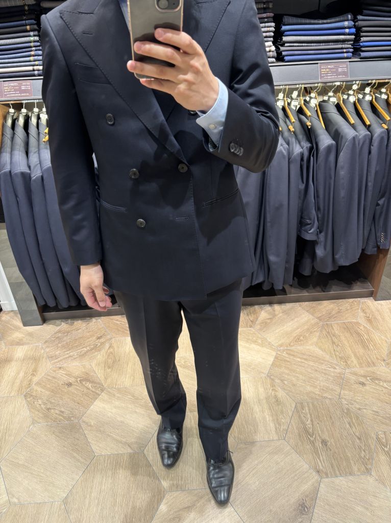 ダブルスーツでパンツのシルエットを太くしてみました。