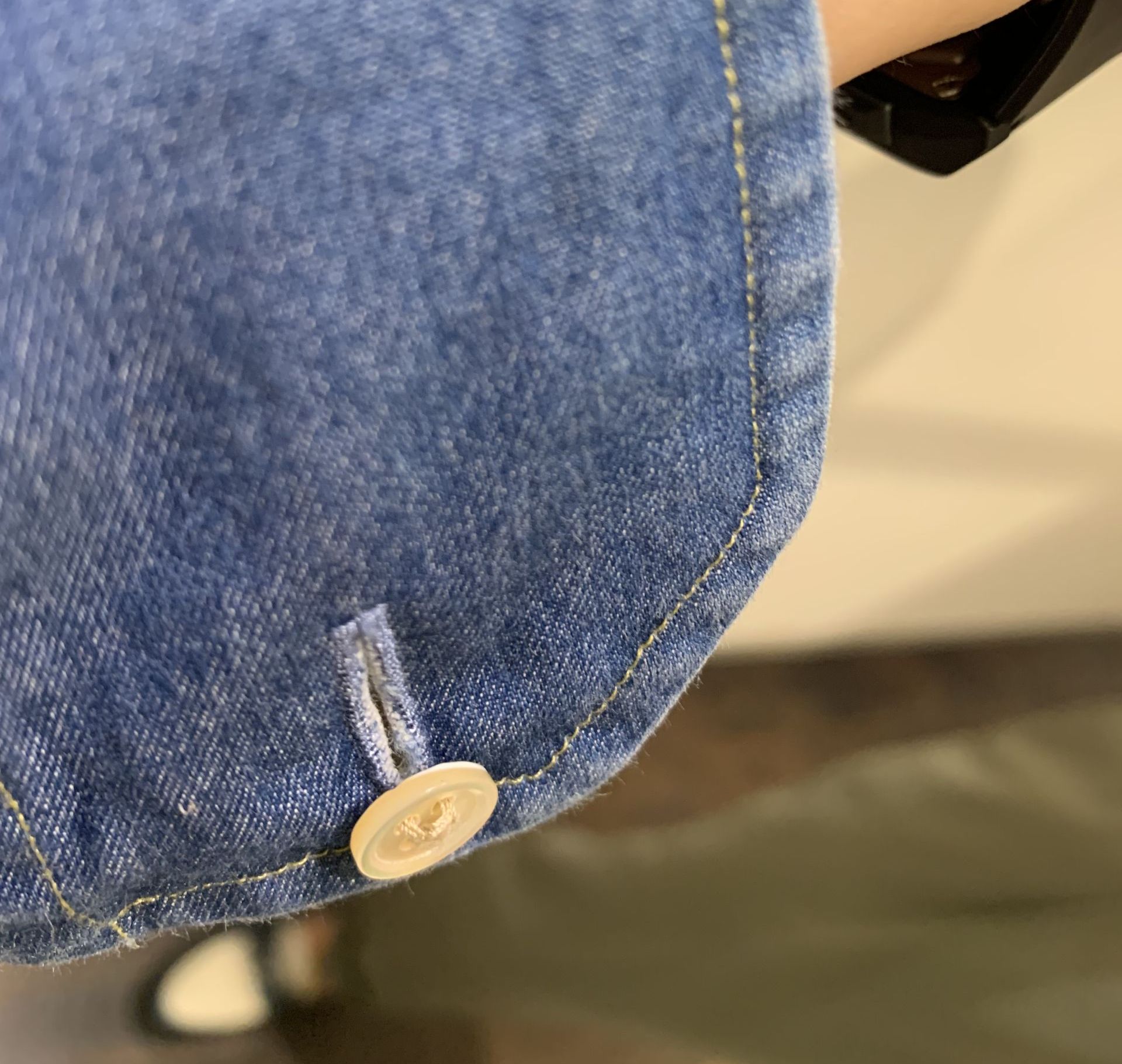 デニムシャツのステッチ部分に注目してみると、ぼこぼこと波打ってる現象、いわゆるパッカリングもエイジングによる味。