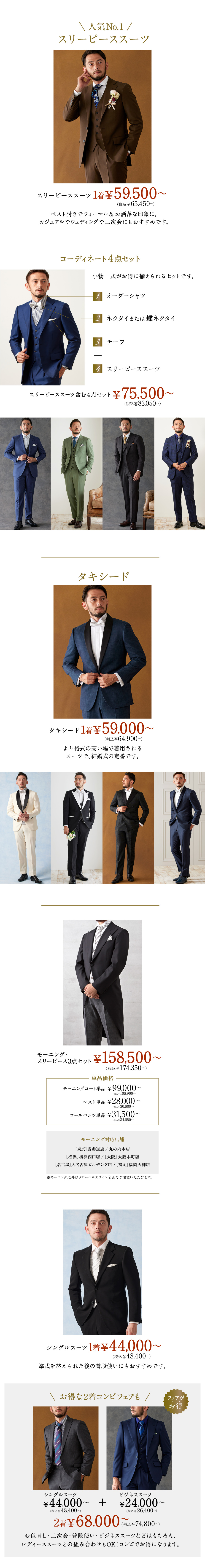 グローバルスタイルでは、結婚式に参列されるお客様にサイズに合ったスーツと