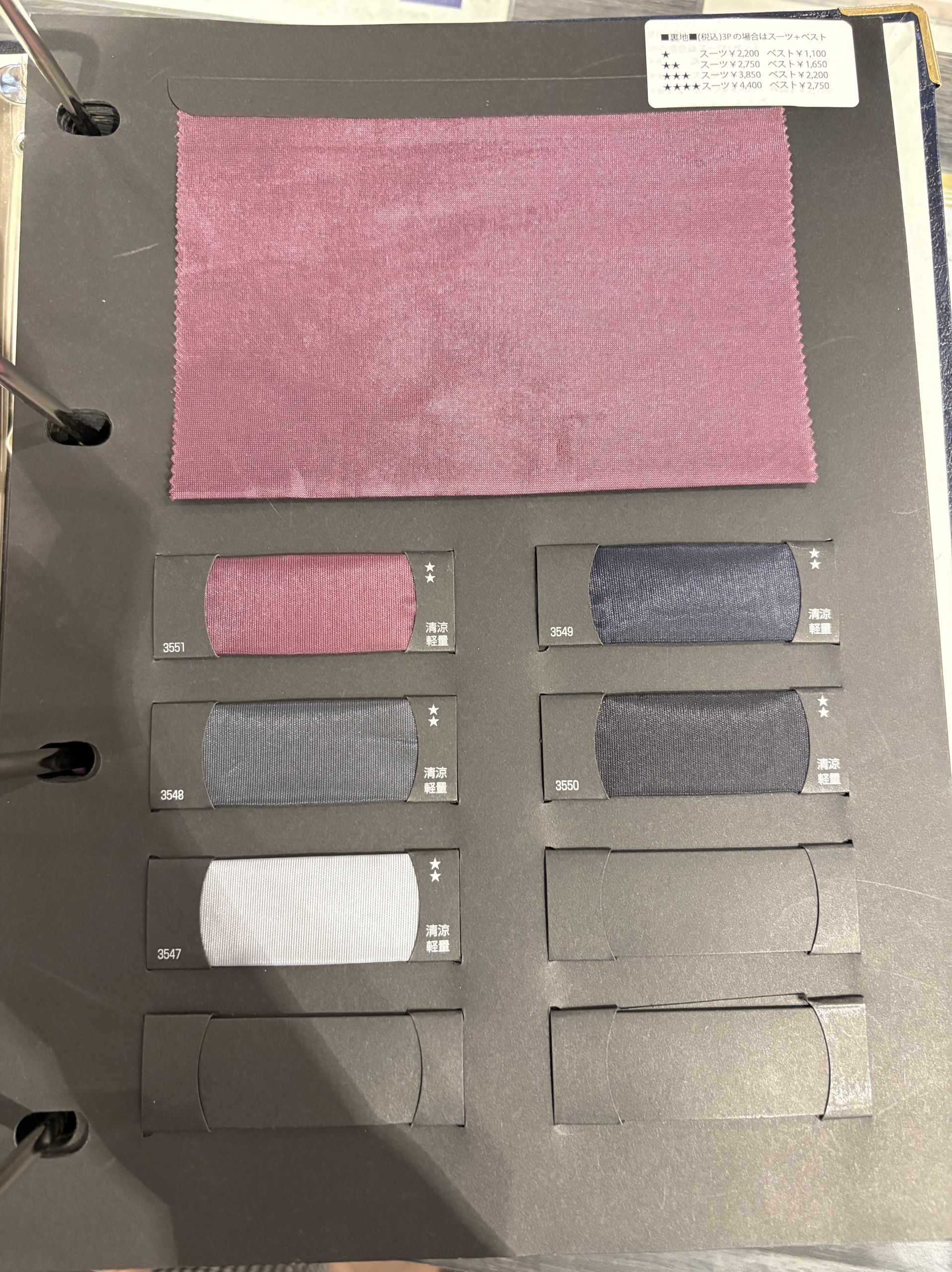 お選びいただける裏地の中に