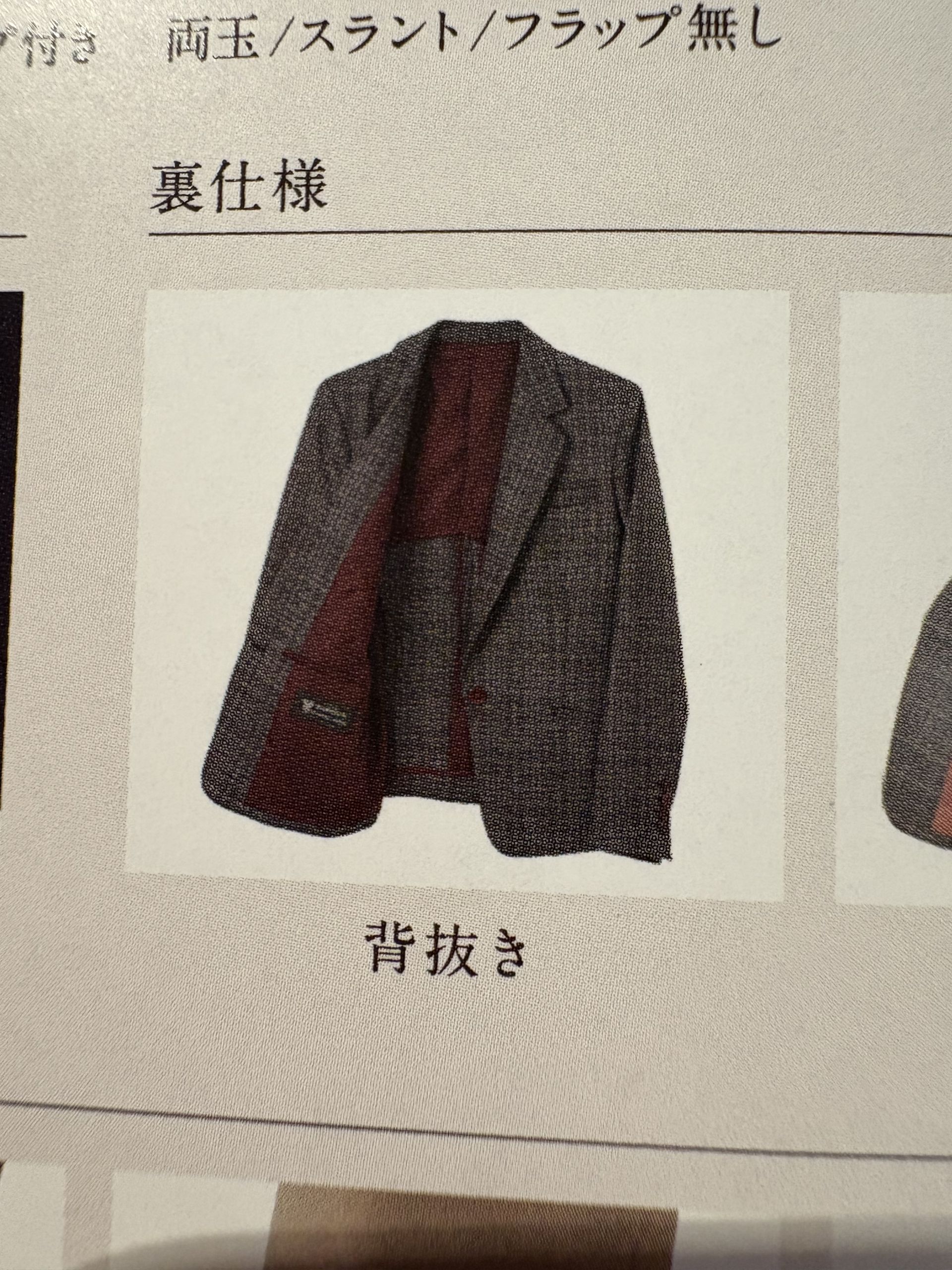 後は背中だけ裏地をつけない背抜き仕様にしていただくと