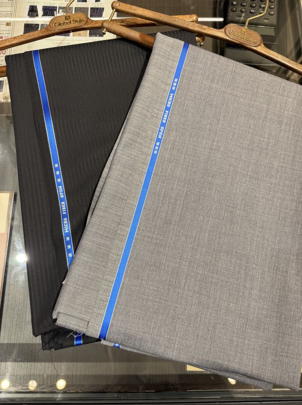 どちらもスーツの王道を行く色柄で、幅広いシーンにてお使いいただけます。