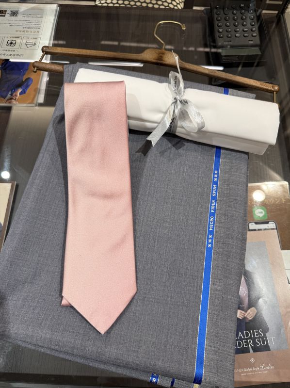 これからの季節、ライトグレーには、ホワイトのシャツに淡いピンクのタイを合わせてあげると涼しげで品良くまとまります。