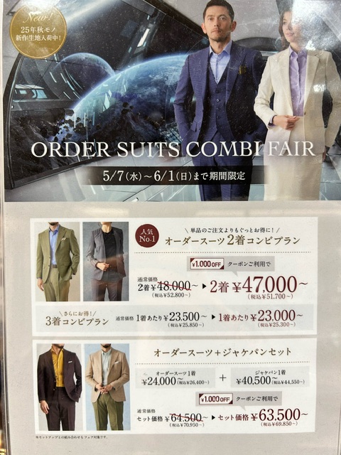 今月は、2着で¥48,000~ (1着¥24,000~) のところを