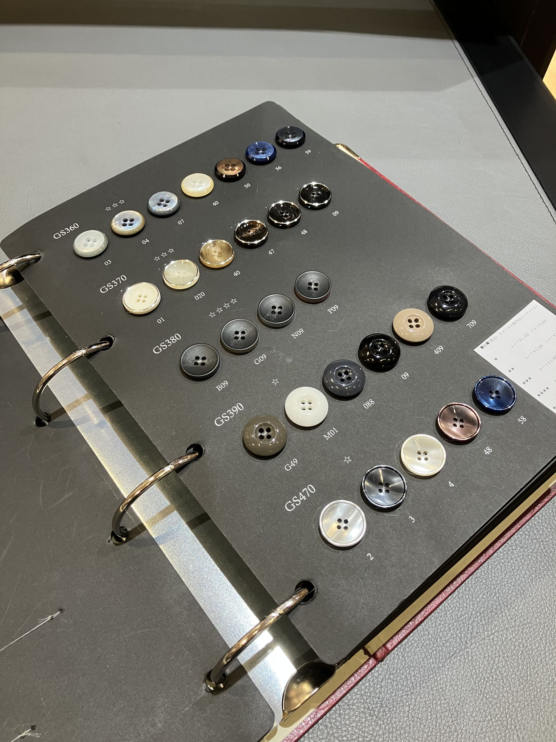 釦や裏地で雰囲気が大きく変わりますので、ぜひ拘りたいポイントとなります。