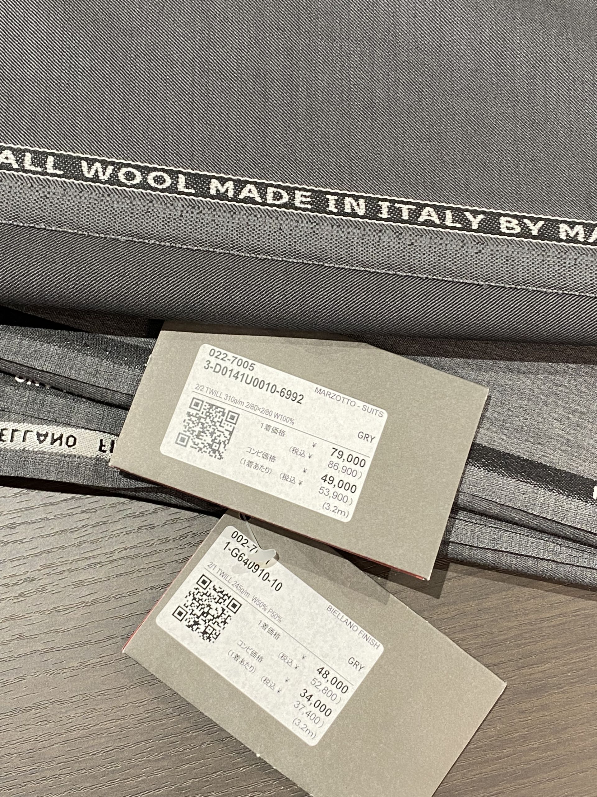 生地についているタグには生地ブランドや重さ、組成の表記がされています。